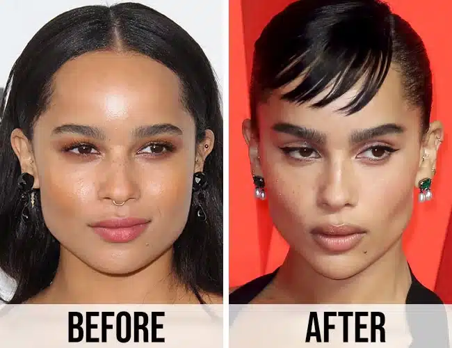 Before-and-after photos of Zoe Kravitz are popular online. They show differences in angles, lighting, or styling more than surgery. Fans often compare her to Bella Hadid, but such guesses without medical input are not reliable.
